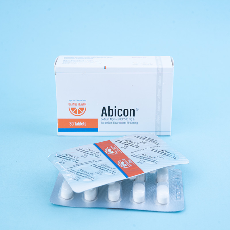 Abicon® Tablet: Each tablet contains Sodium Alginate USP 500 mg and Potassium Bicarbonate BP 100 mg.