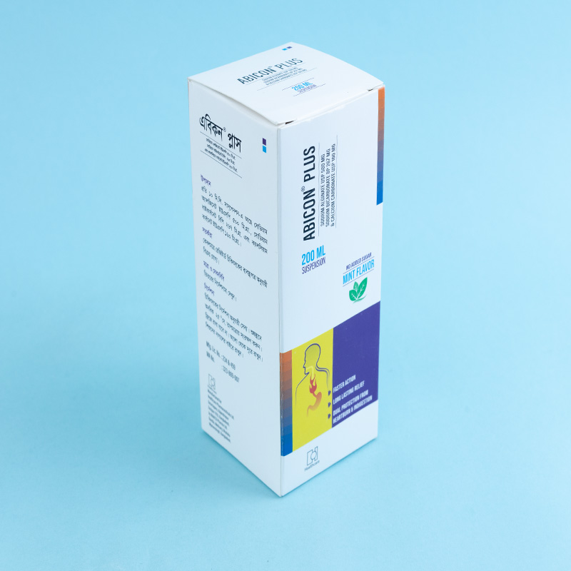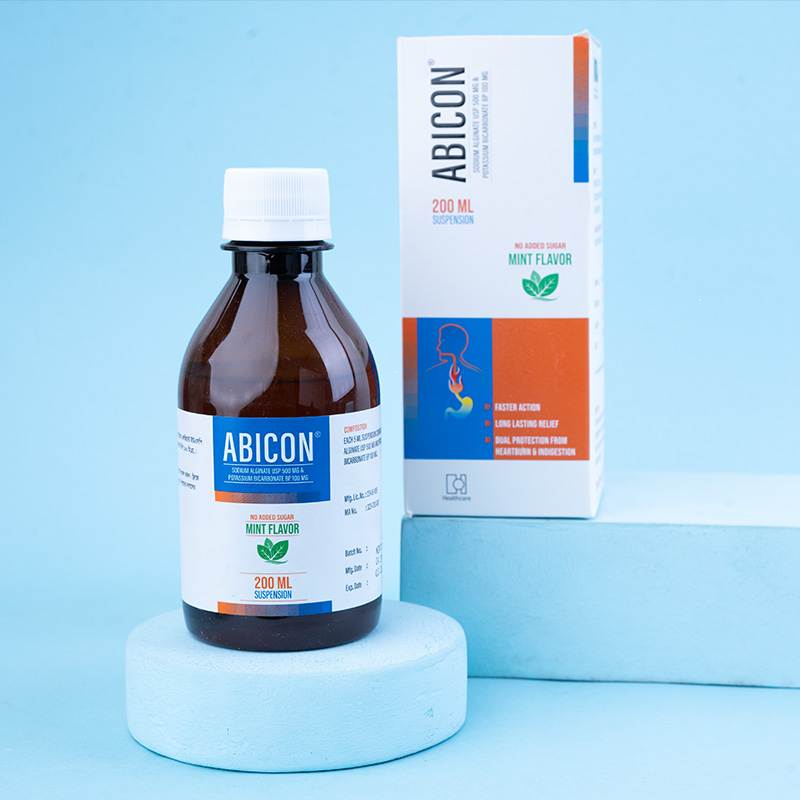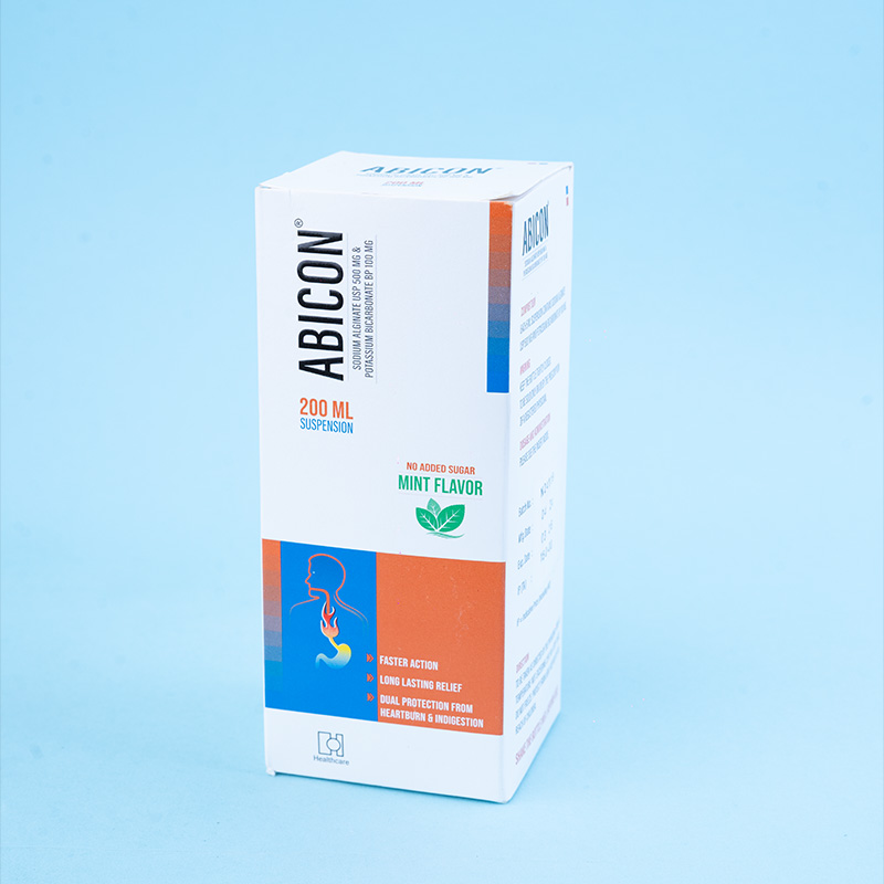 Abicon® works by forming a raft (thick layer) on top of the stomach contents soon after it comes into contact with stomach acid. The raft acts as a strong physical barrier and helps keep all the components of the stomach contents in the stomach, preventing them from seeping back into the esophagus where they can cause discomfort.