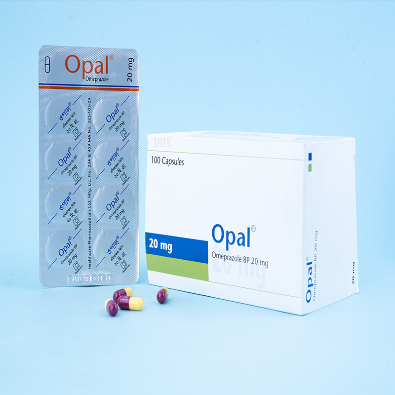 Opal® (Omeprazole) inhibits gastric acid secretion by irreversibly blocking the enzyme hydrogen/potassium adenosine triphosphatase (H+/K+ATPase), also known as the proton pump, in gastric parietal cells. Oral dosing with Opal® produces gastric acid secretion inhibition within 1-2 hours of the first dose. Maximum effect is achieved within 4 days of treatment, after which the degree of acid inhibition remains constant.