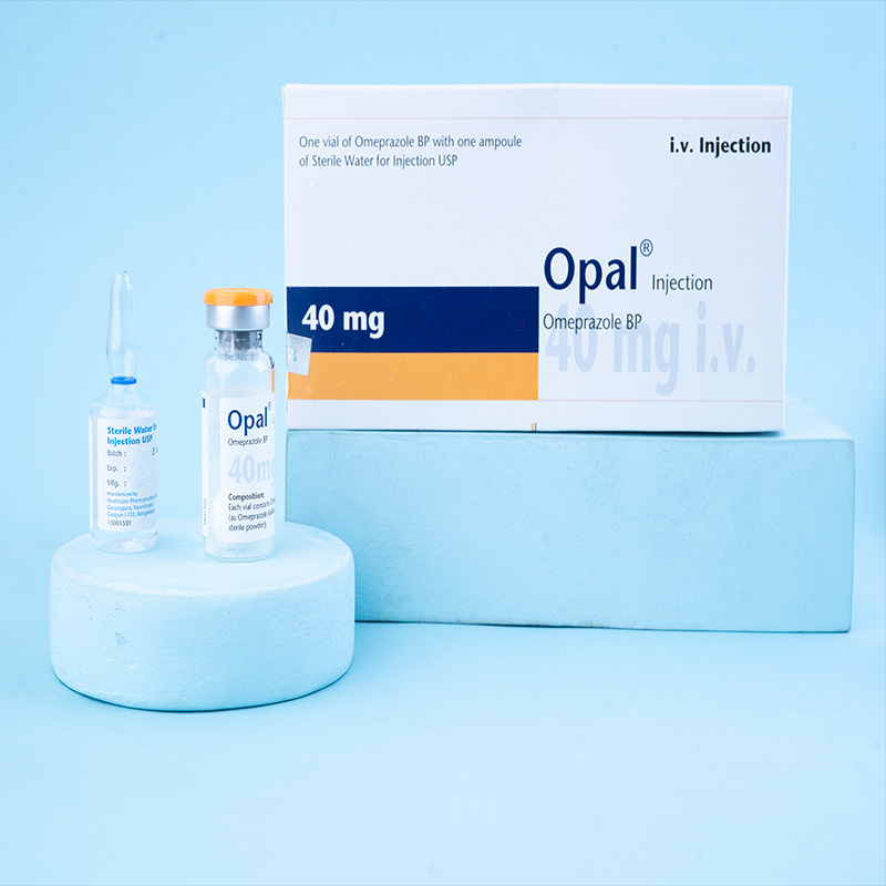 Opal® 40 mg i.v. injection: Each vial contains Omeprazole BP 40 mg (as Omeprazole sodium BP lyophilized sterile powder), and each ampoule contains 10 ml of sterile water for injection USP.