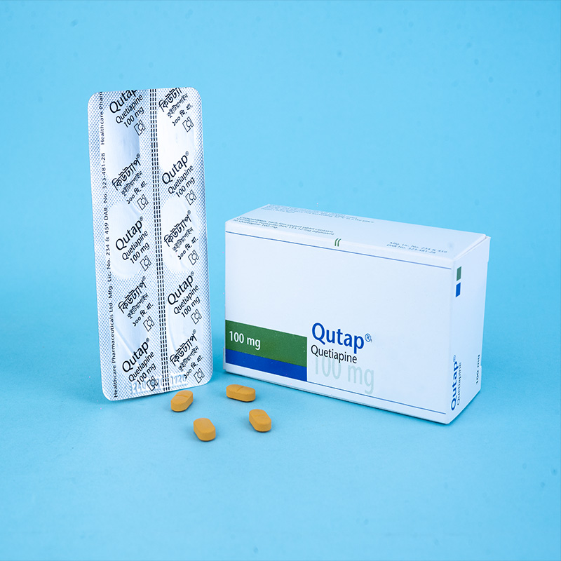 Qutap® 100 mg: Each film-coated tablet contains Quetiapine Fumarate INN 115.12 mg, equivalent to Quetiapine 100 mg.