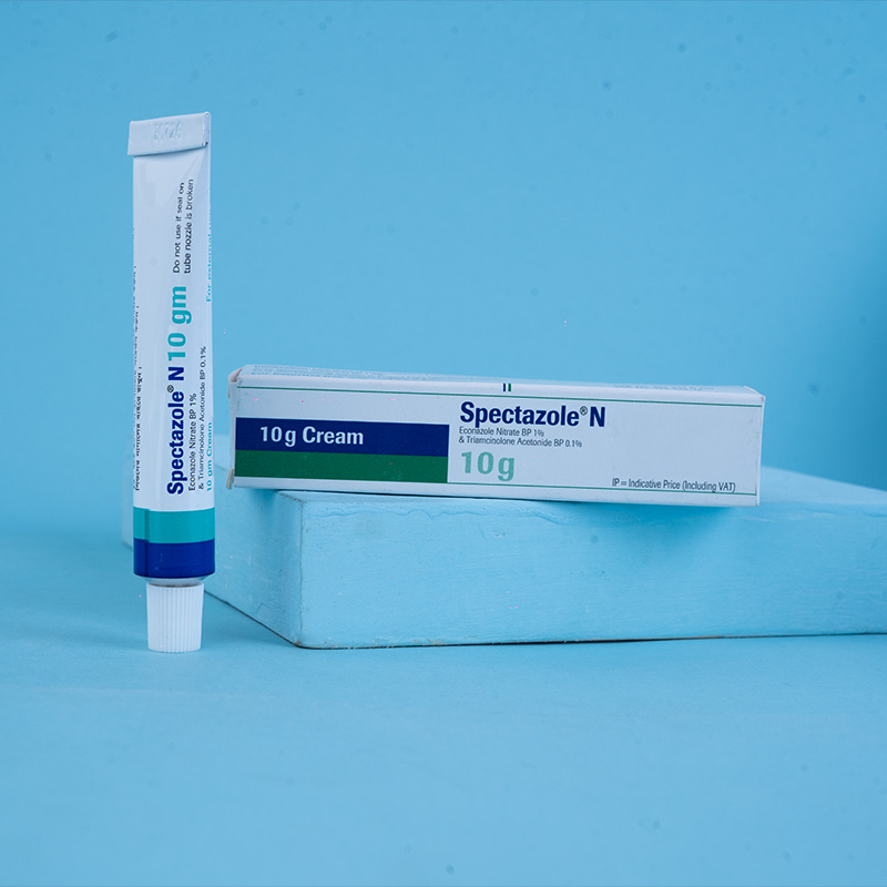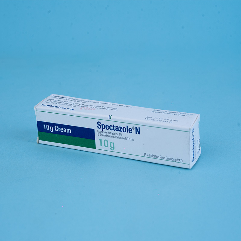 Spectazole® N cream is a broad spectrum antimycotic with anti-inflammatory, anti-pruritic and anti-allergic effects. This cream is composed of Econazole Nitrate, a powerful antifungal and Triamcinolone Acetonide to enforce its antimicrobial effect and the effect of subduing comprehensive inflammations. Therefore, it provides remarkable effects on mixed infections of gram-positive and fungus,eczema and recurrent inflammations and shows special effects on bacterial inflammations of skin folds. The range of action of econazole covers all dermatomycoses caused by the following pathogens:-Dermatophytes, such as Trichophyton, Epidermophyton, Microsporum, Cladosporium, Yeasts, such as Candida, Cryptococcus neoformans, Torulopsis, Rhodotorula, Moulds, Fungi, such as Scopulariopsis brevicaulis, Aspergillus flavus, Histoplasma capsulatum, Blastomycosis dermatitidis, Malassezia furfur and Nocardia minutissima and others.