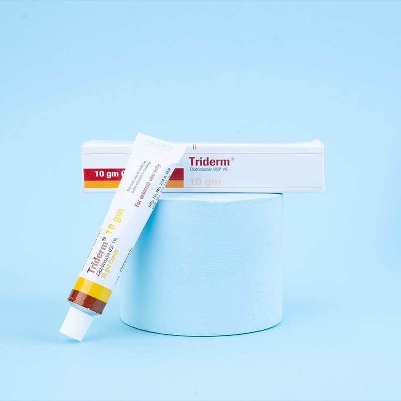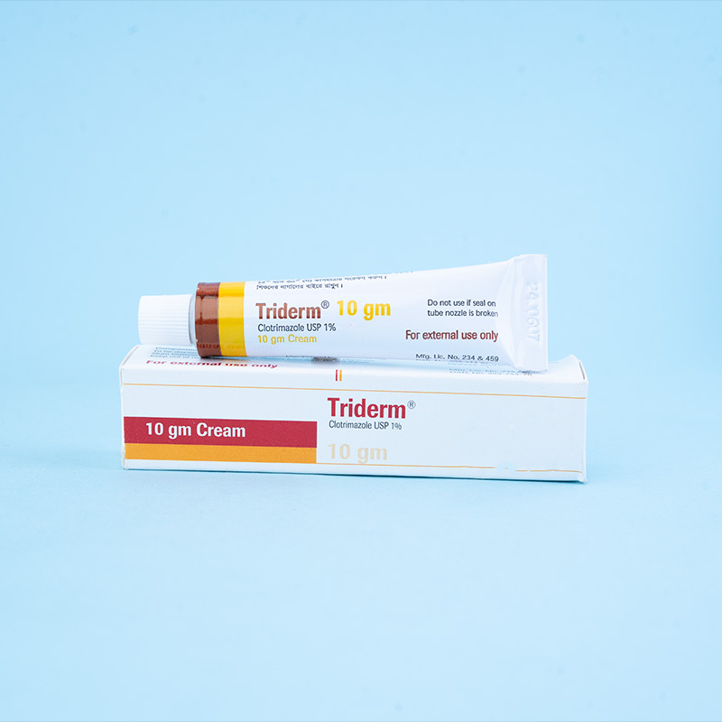 Apply sparingly to the affected areas 2–3 times daily and rub in gently. Triderm® should be applied to clean and dry skin.