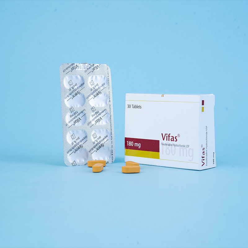 Vifas suspension is a presentation of Fexofenadine Hydrochloride USP. Fexofenadine Hydrochloride USP is the synthetic Hydrochloride salt of Fexofenadine, the carboxylic acid metabolite of terfenadine. It is an orally active non-sedating H1-receptor antagonist and is effective for the relief of symptoms associated with seasonal allergic rhinitis (sneezing, rhinorrhea, pruritus and lacrimation).