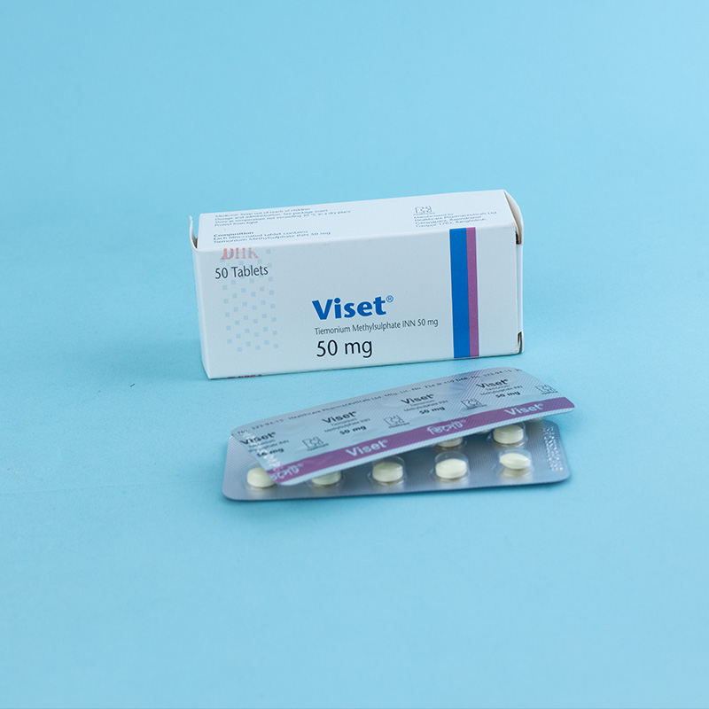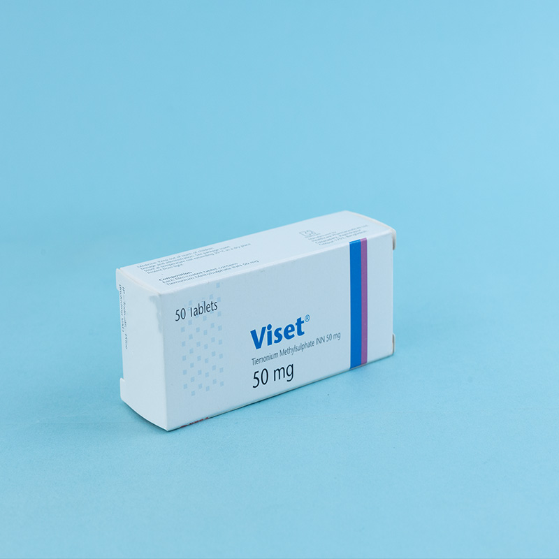 Viset® 50 mg tablet: Each film-coated tablet contains Tiemonium Methylsulphate INN 50 mg.