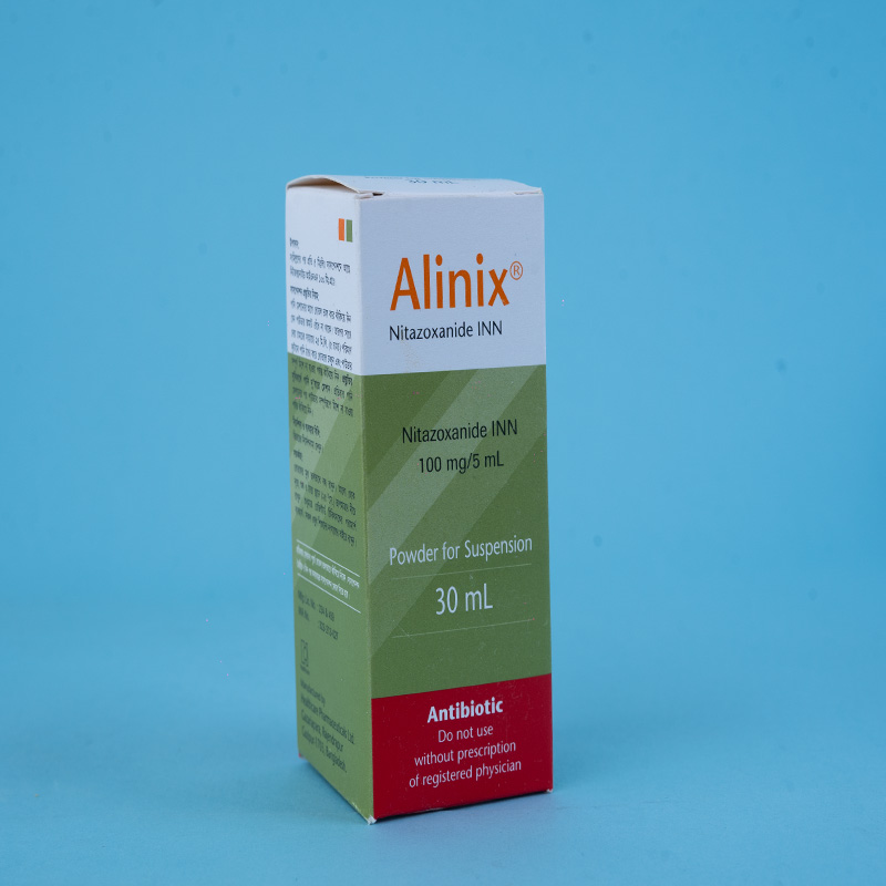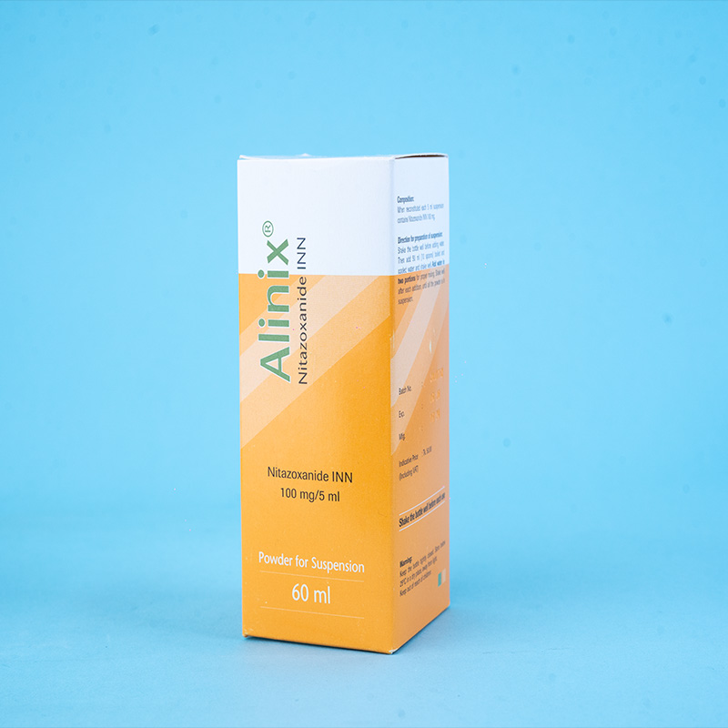 Alinix® Powder for Suspension: When reconstituted, each 5 ml suspension contains Nitazoxanide INN 100 mg.