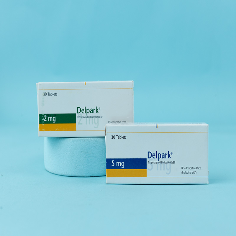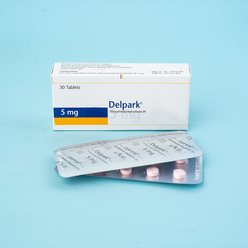 Delpark® (Trihexyphenidyl HCI) is indicated as an adjunct in the treatment of all forms of parkinsonism, including postencephalitic, arteriosclerotic, and idiopathic. It is often used as adjuvant therapy alongside levodopa for these conditions. Additionally, it is indicated for controlling extrapyramidal disorders caused by central nervous system drugs such as dibenzoxazepines, phenothiazines, thioxanthenes, and butyrophenones.