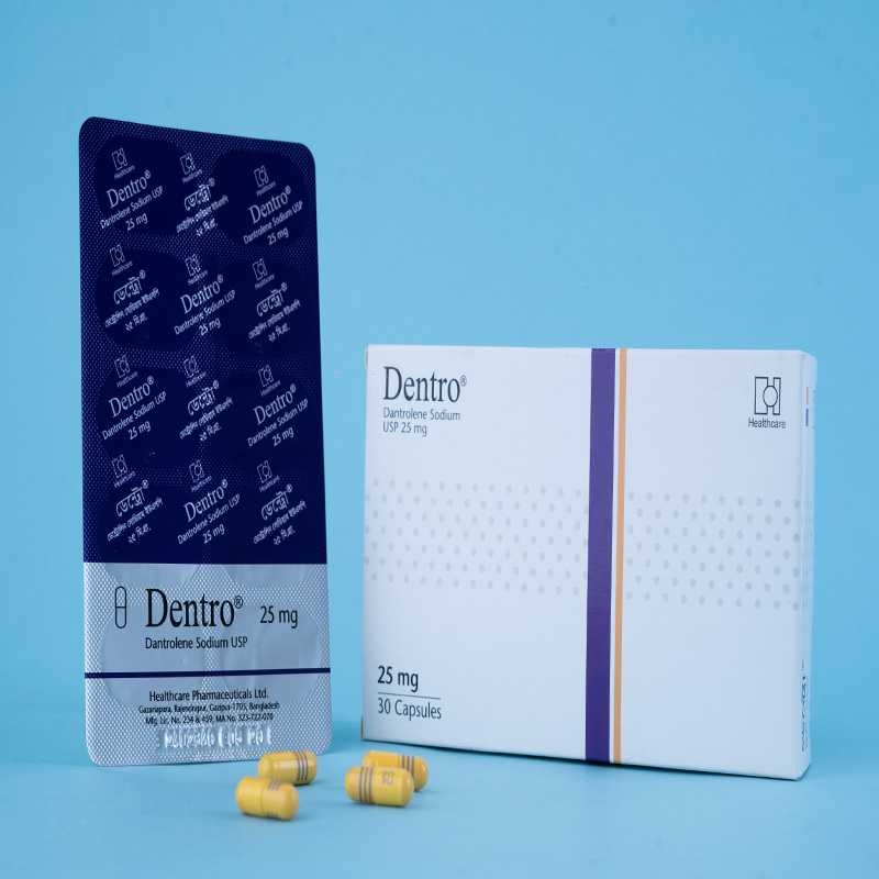 Dentro® produces relaxation by affecting the contractile response of the skeletal muscle at a site beyond the myoneural junction, directly on the muscle itself. In skeletal muscle, Dentro® dissociates the excitation-contraction coupling, probably by interfering with the release of Ca++ from the sarcoplasmic reticulum.