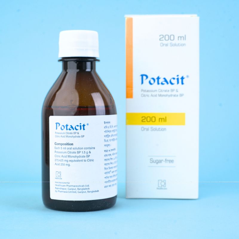 Adults, including the elderly, and children over 6 years: 10 ml of Potacit® solution three times daily after meals. Children under 6 years: 5 ml of Potacit® solution three times daily after meals.Potacit® solution should be diluted in a glass of water (250 ml) and may be followed by additional water if desired.