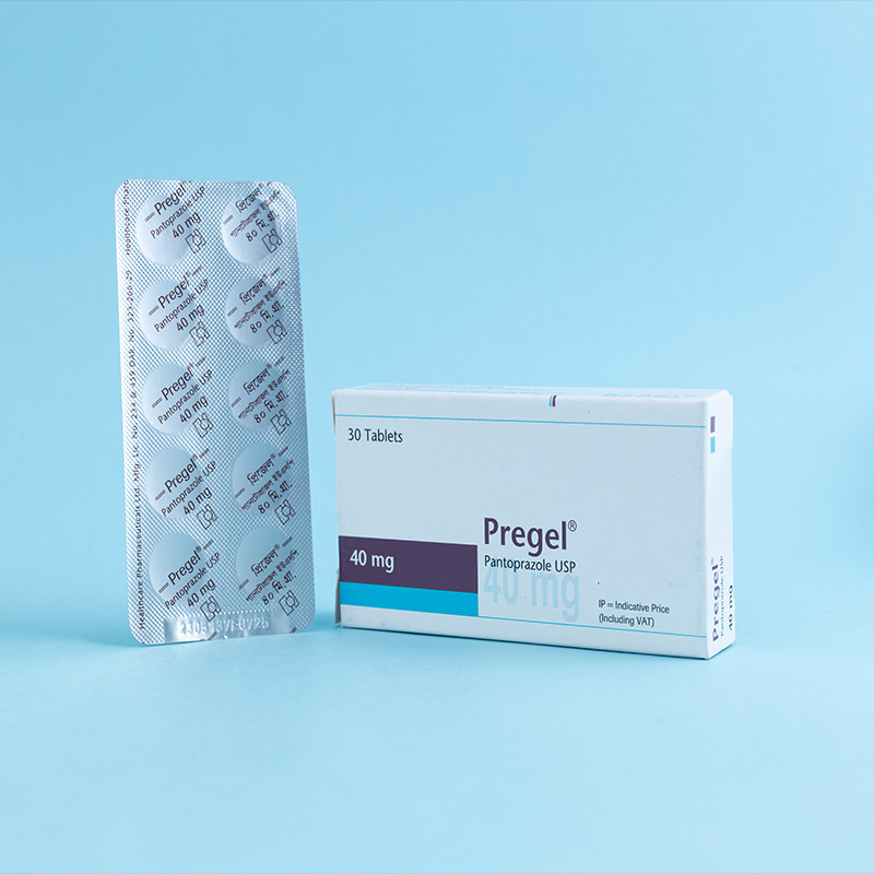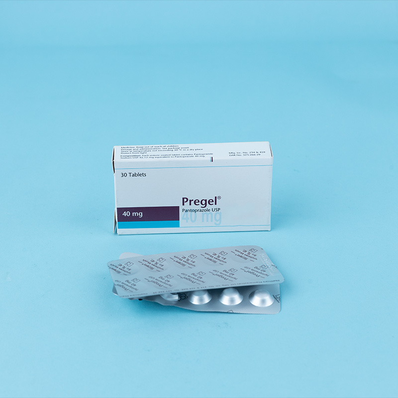 Pregel® 40 mg Tablets: Each enteric-coated tablet contains Pantoprazole Sodium USP equivalent to Pantoprazole 40 mg.