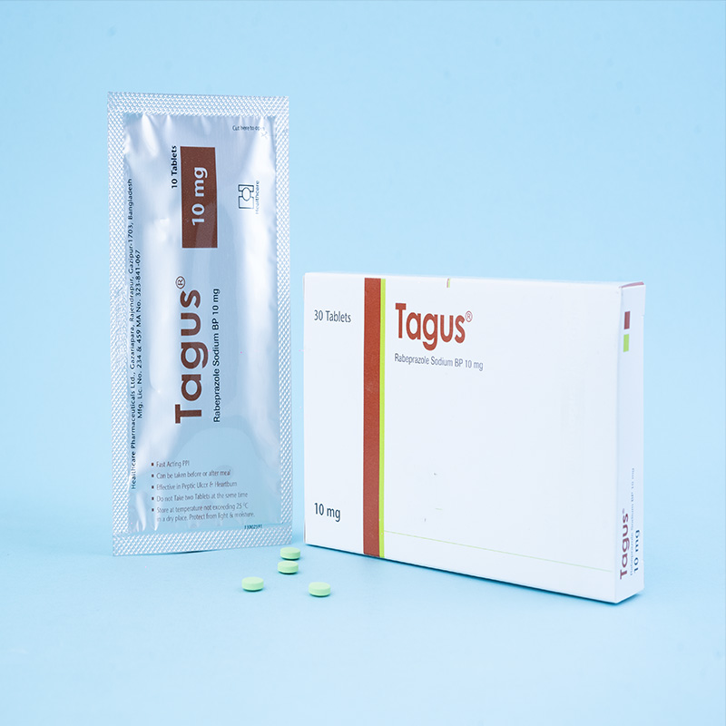 Tagus® capsule 10 mg: Each capsule contains Rabeprazole Sodium BP 10 mg in enteric-coated pellets.